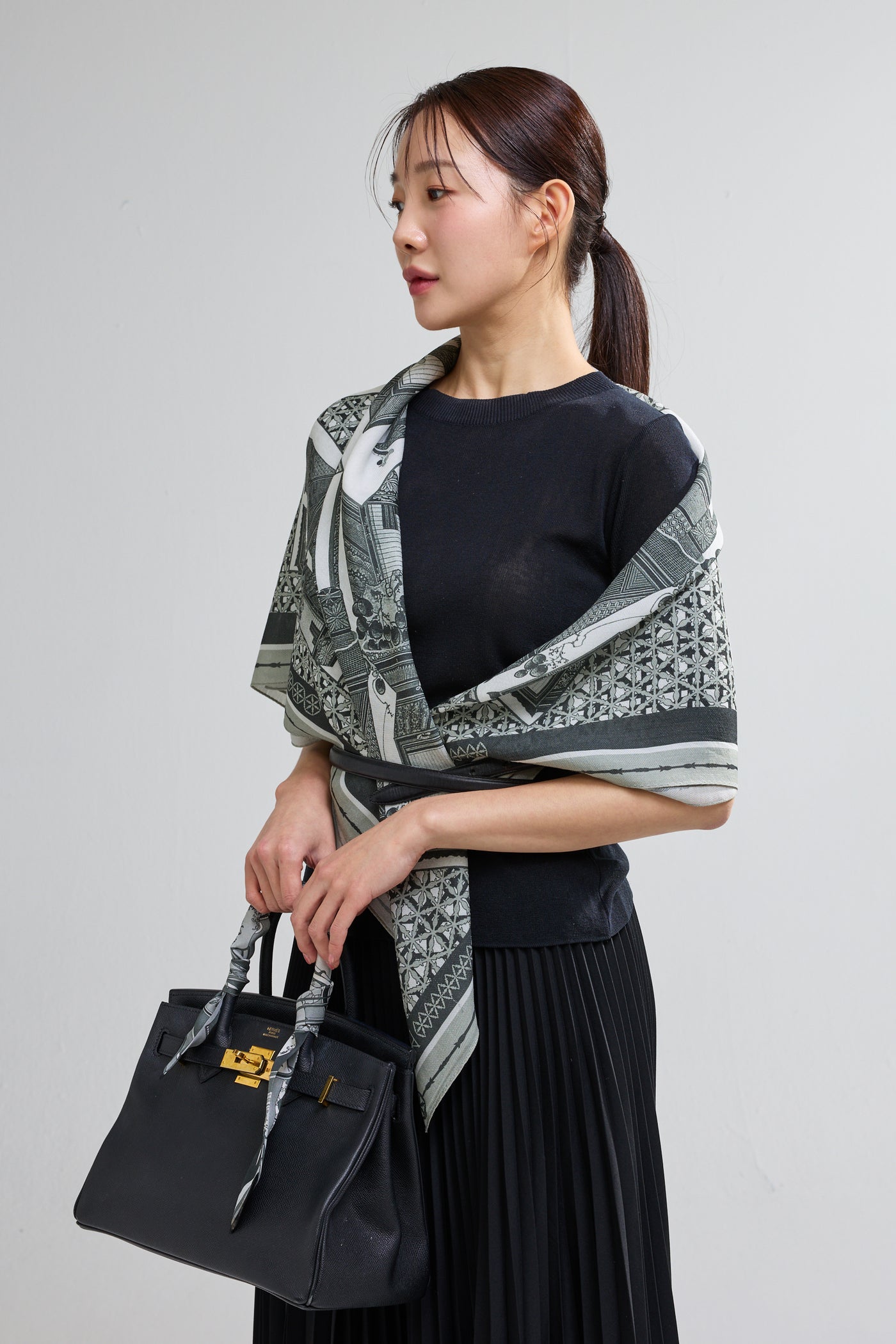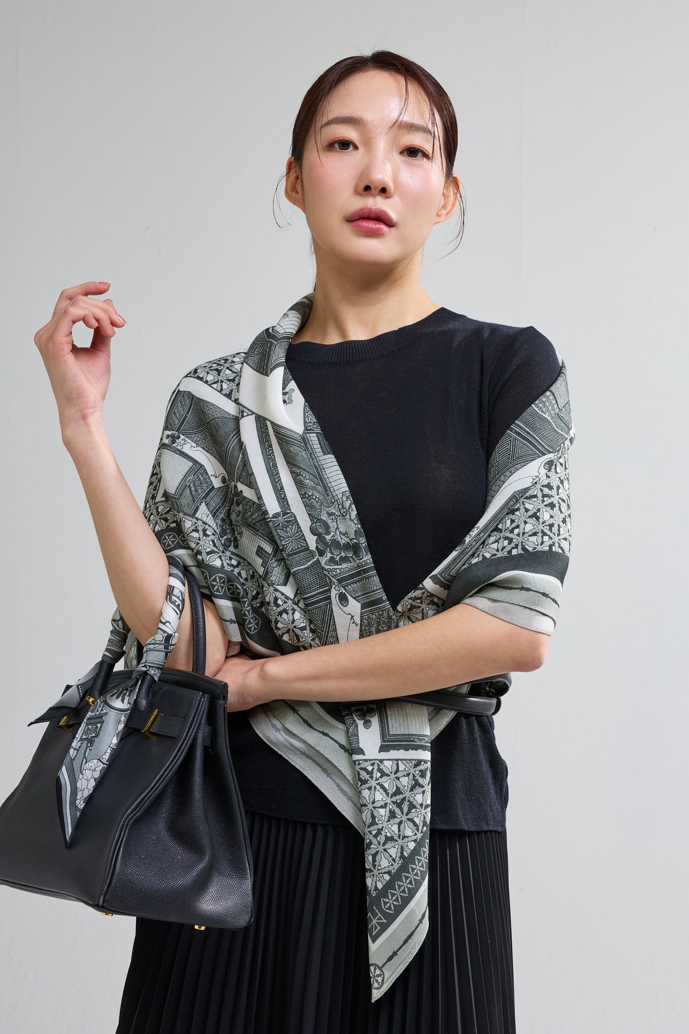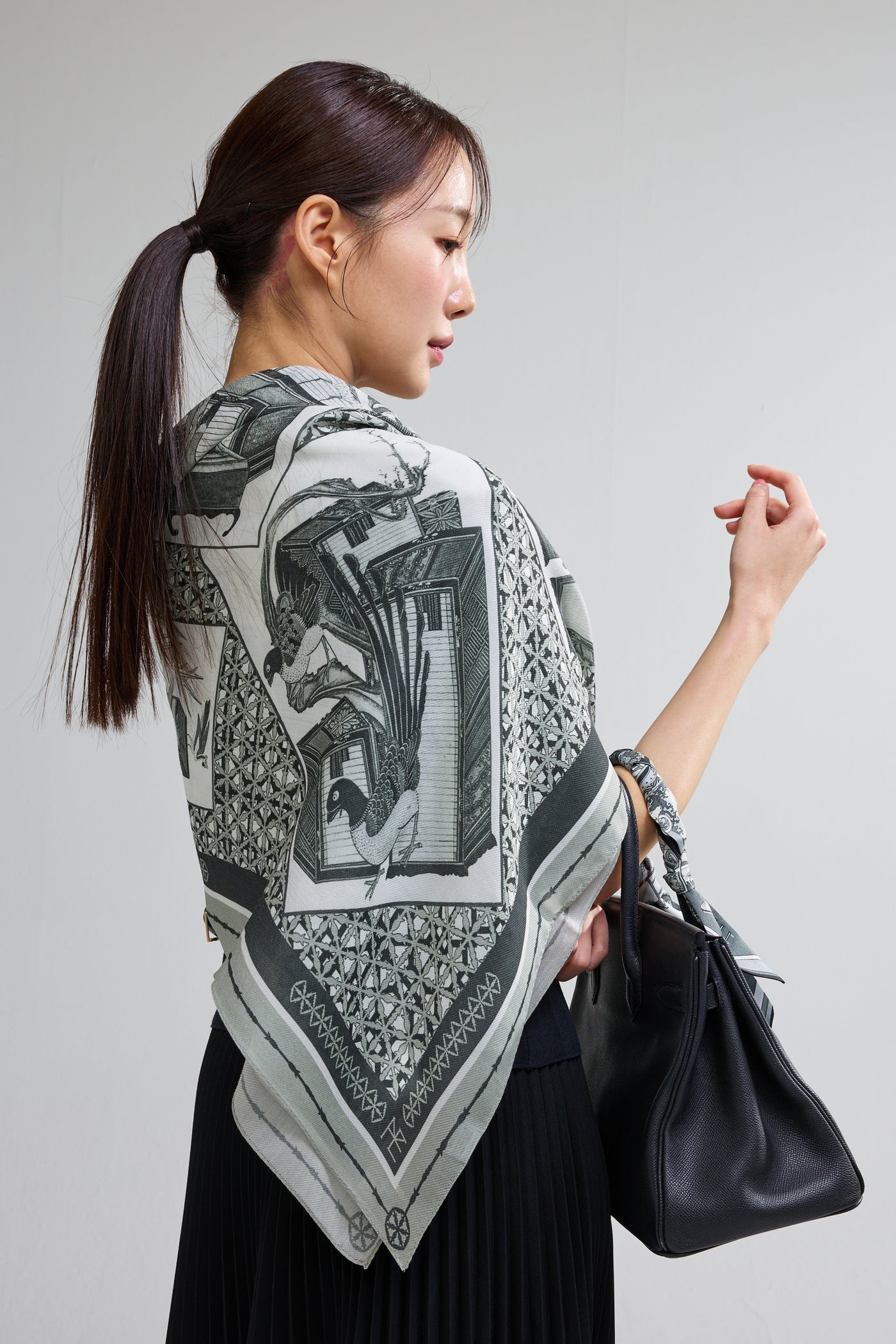 The scarf includes the didactic meaning to study hard and grow in virtues. Design House Hye harmonized the royal culture and the folk arts by blending Chaekgado into flower designed door.